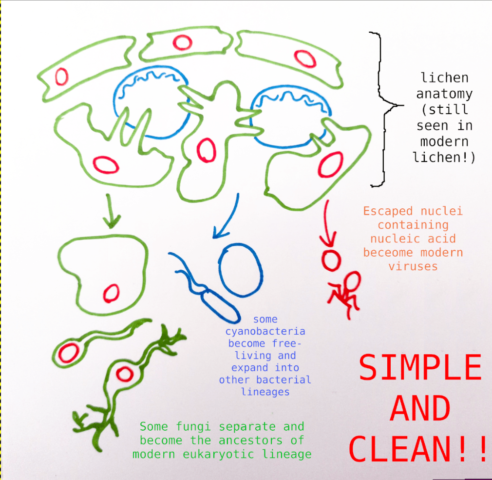 The alternate “Lichen as last universal common ancestor” model, which I will refer to for convenience as “Big Lichen”, does not expect so little of Mother Nature.