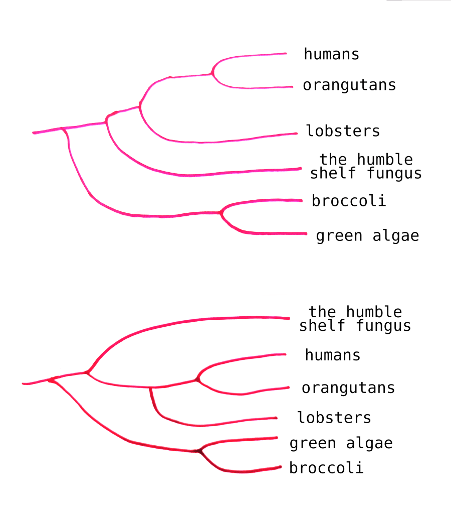 You might know that you can rearrange the specific ordering of a phylogenetic tree. As long as the relationships between the branches stay the same, the order doesn’t matter.
