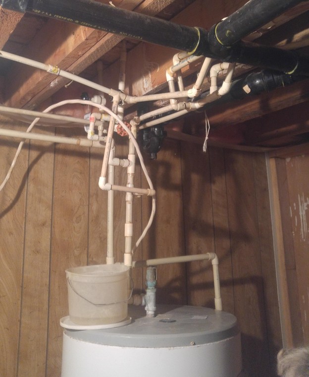 The motto of the spaghetti tower is “Sure, it works fine, as long as you never run lukewarm water through it and turn off the washing machine during thunderstorms.” || Image from the always-delightful r/DiWHY.